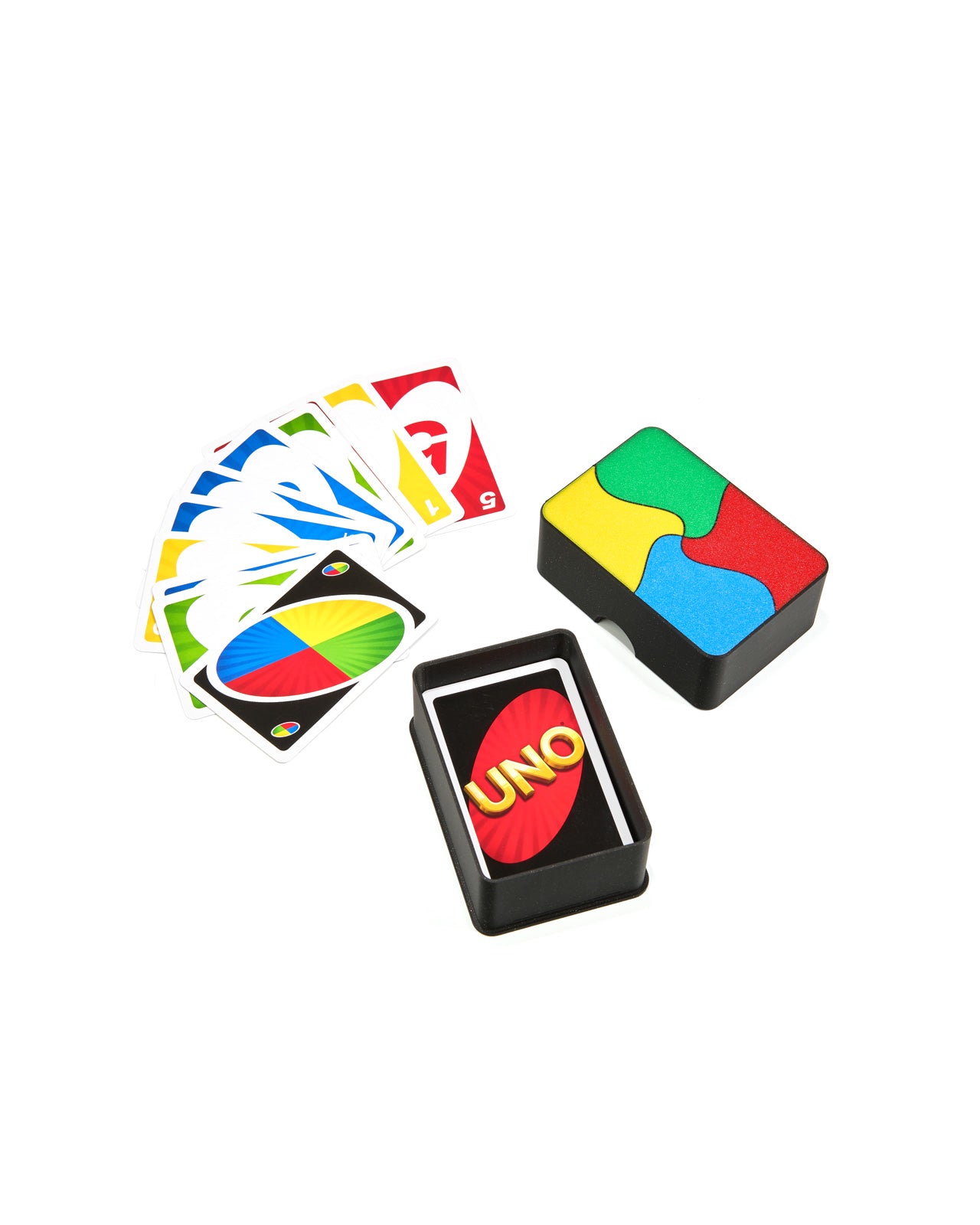 Kartenbox für Spielkarten in blau/gelb/rot/grün (z.B. für Uno)